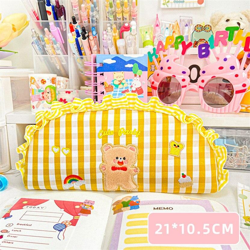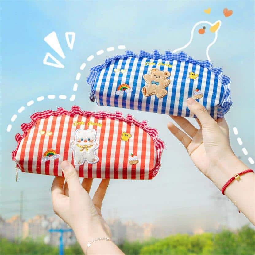 De gestreepte schooletui met berenmotief is perfect voor kinderen die van dieren houden! Hij is gemaakt van dikke, slijtvaste stof, met een ritssluiting en leren handvatten. De etui is ruim en kan alles bevatten wat uw kind nodig heeft voor school.