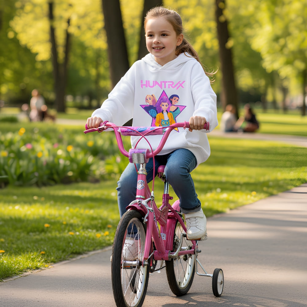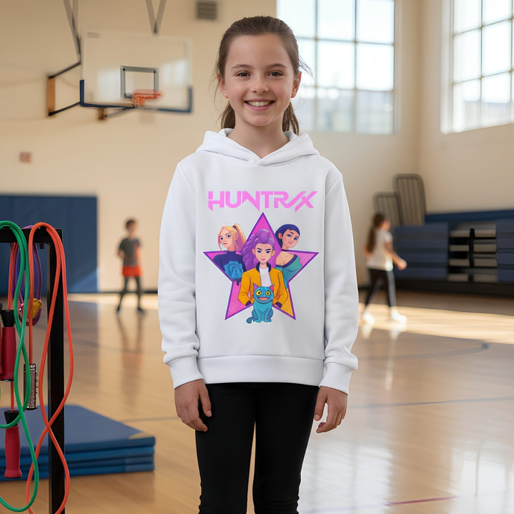 Hoor je jouw dochter uit volle borst haar favoriete teksten zingen? Comfortabel, trendy en makkelijk te dragen, deze K-pop Demon Hunters Huntrix witte Kindersweater met capuchon laat het hart van kleine fans sneller kloppen. Een favoriet kledingstuk om zonder aarzelen te geven voor een stijlvolle look!