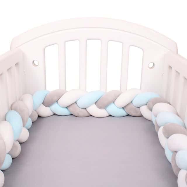 De wit grijs blauwe geweven wiegbumper is handgemaakt van hoogwaardige stoffen. De stoffen voelen zacht aan en zijn een lust voor het oog. De bumper is met zorg en aandacht geweven. De afwerking is perfect. De stootrand is een must-have voor elke slaapkamer. Hij is elegant en chic. Het zal een vleugje stijl aan uw slaapkamer toevoegen.