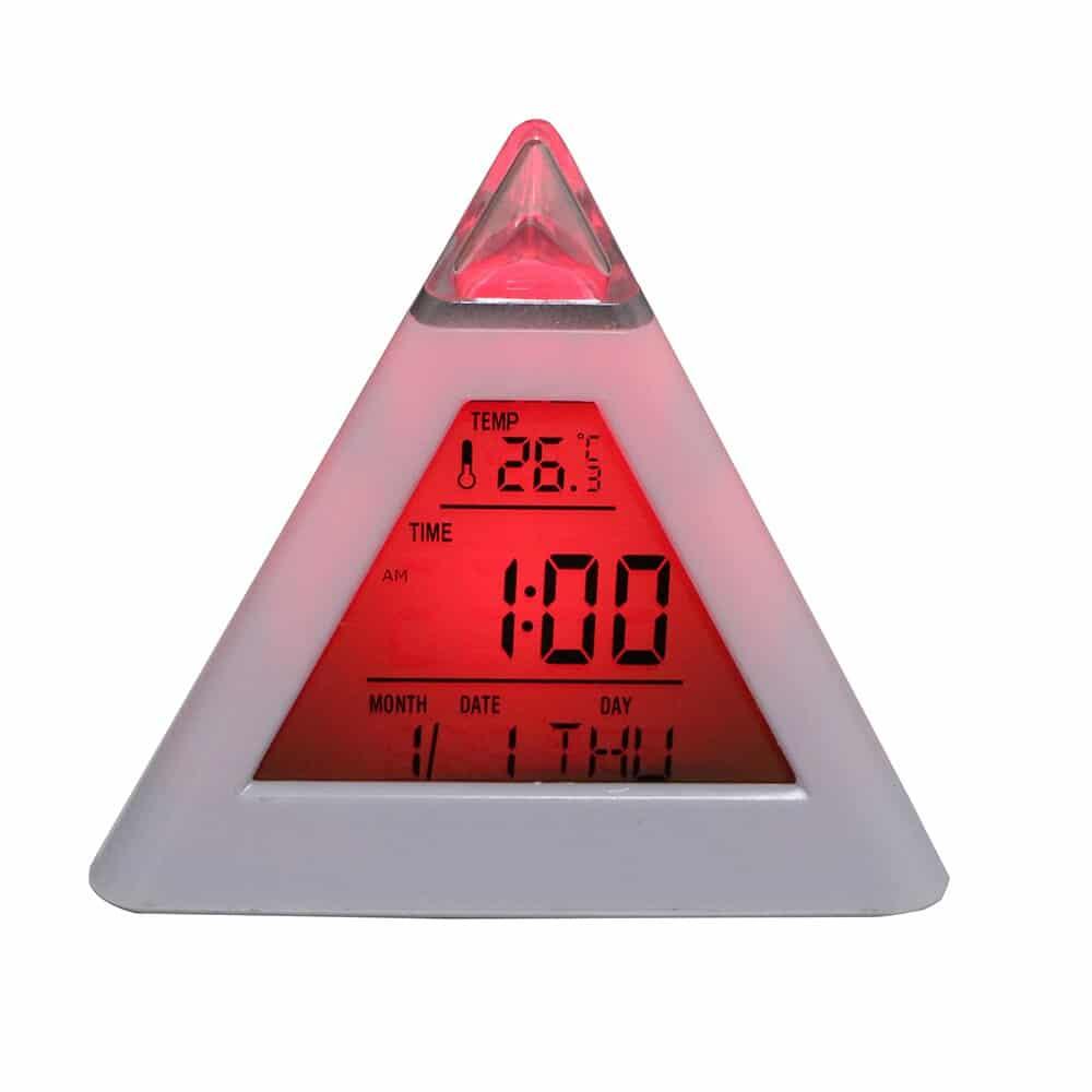 S Ochtends wakker worden is niet altijd gemakkelijk voor kinderen. Soms hebben ze een beetje hulp nodig. Daarom hebben wij deze mooie piramidevormige digitale wekker bedacht. Hij zal prachtig staan in de slaapkamer van uw jongen of meisje. Deze originele, heldere wekker zal haar slaapkamer opfleuren en haar helpen om elke dag op tijd wakker te worden.