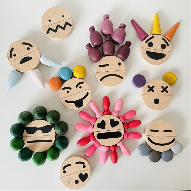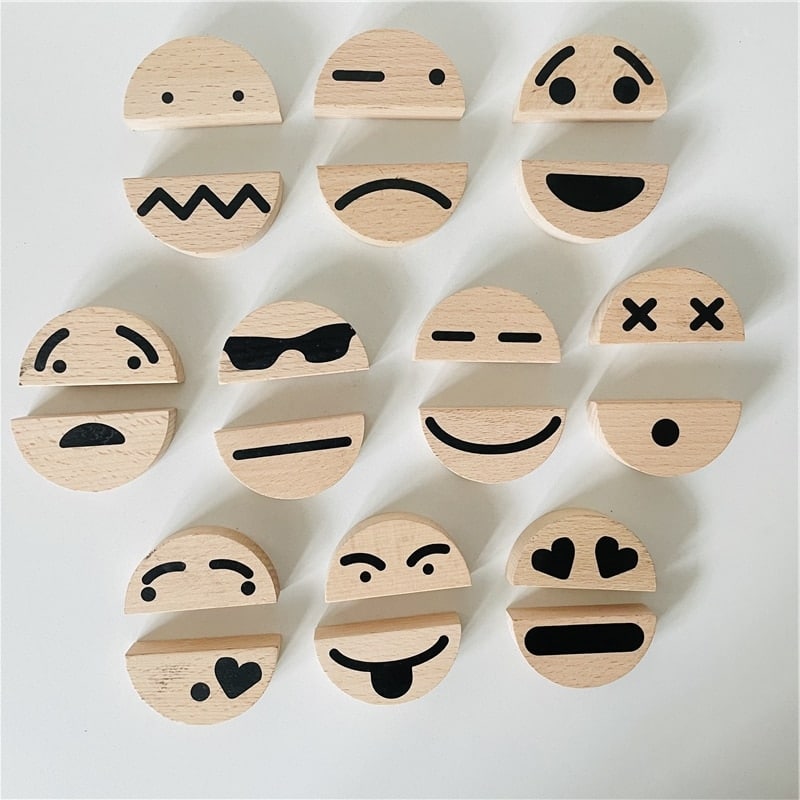 Ontdek ons nieuwe spel voor kinderen. Schattige kleine smileys van hout, 10 emoties wachten op uw kind voor maximaal plezier. Ze zullen hun logisch denkvermogen leren ontwikkelen en tegelijkertijd plezier hebben.