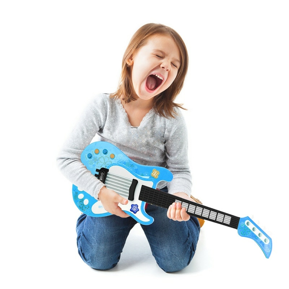 Deze leuke elektrische gitaar voor kinderen is een geweldige manier voor beginnende muzikanten om muziek te leren spelen. De gitaar heeft een heldere, kleurrijke afwerking, waardoor hij erg aantrekkelijk is voor kinderen. De toetsen zijn gemakkelijk te hanteren en in te drukken, waardoor kinderen duidelijke, heldere klanken kunnen produceren. De gitaar is ook licht van gewicht, waardoor hij gemakkelijk te dragen en te bespelen is. Dit leuke en speelse elektrische muziekinstrument is speciaal ontworpen voor kinderen. Het is gemaakt van hoogwaardige materialen en heeft een uniek ontwerp waarmee uw kind muziek kan maken en tegelijkertijd plezier kan hebben. Uw kind zal de tijd van zijn leven hebben met deze mooie gitaar! Wacht niet langer en bestel hem nu – uw kind zal er dol op zijn en u dankbaar voor zijn!