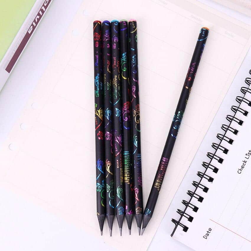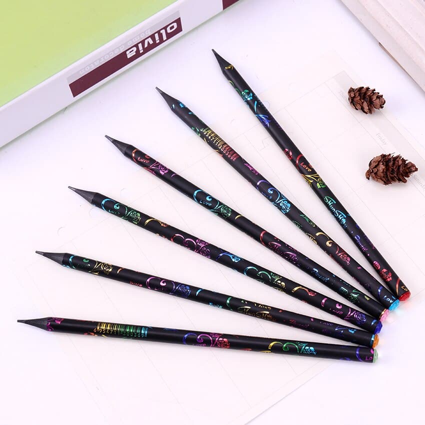 6 HB-potloden met motieven en gekleurde diamanten